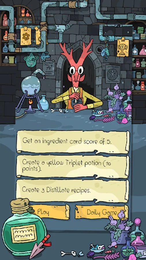 Each game has a unique, randomly generated set of cards that will test your skills. By successfully completing games you can collect a variety of masterfully crafted potions. Daily tasks will keep you busy and you can compete with other players via online leaderboards.