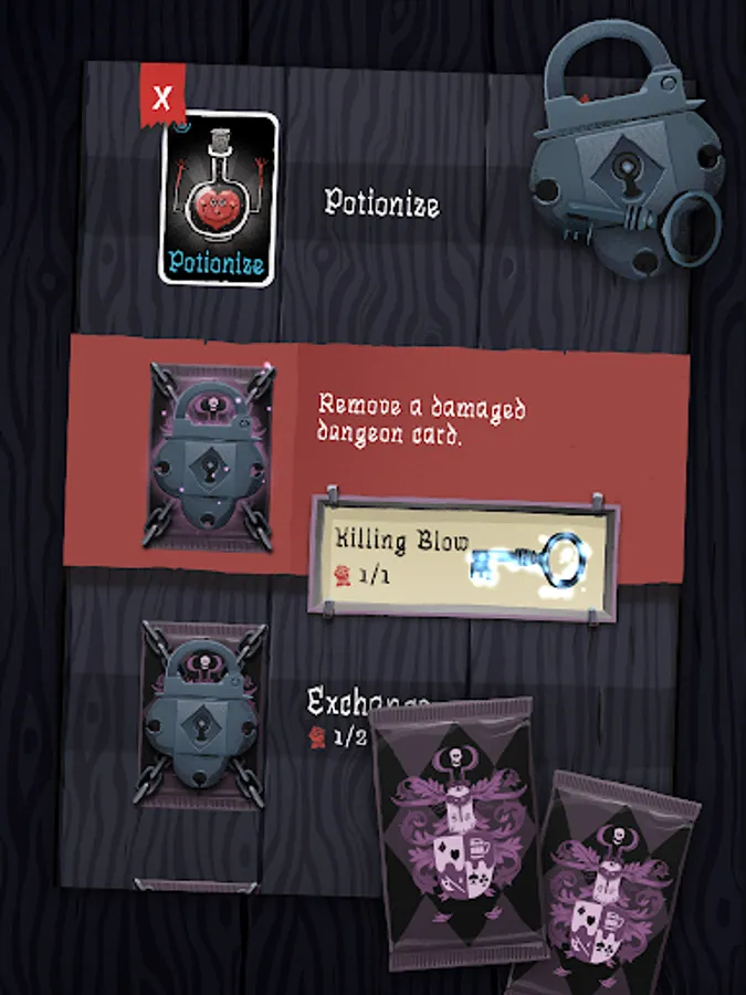 Clear the dungeon of 54 cards by using item-cards, slaying monsters and managing your limited inventory. On each run, you can use five ability-cards (mini deck building) to gain unique skills. By collecting gold, you can unlock 35 more ability-cards to access new tactics and even higher scores.