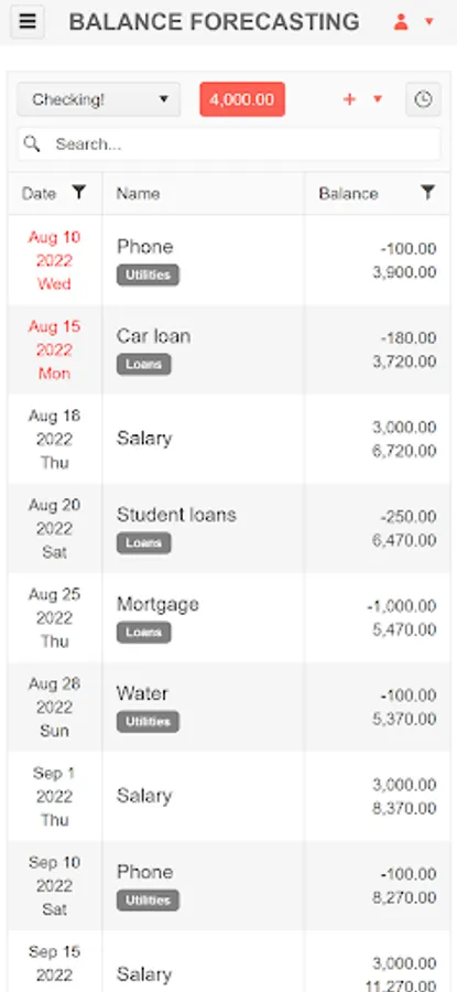 - See how changing, adding or removing a recurring bill will affect your future balance (i.e. getting a new car loan).