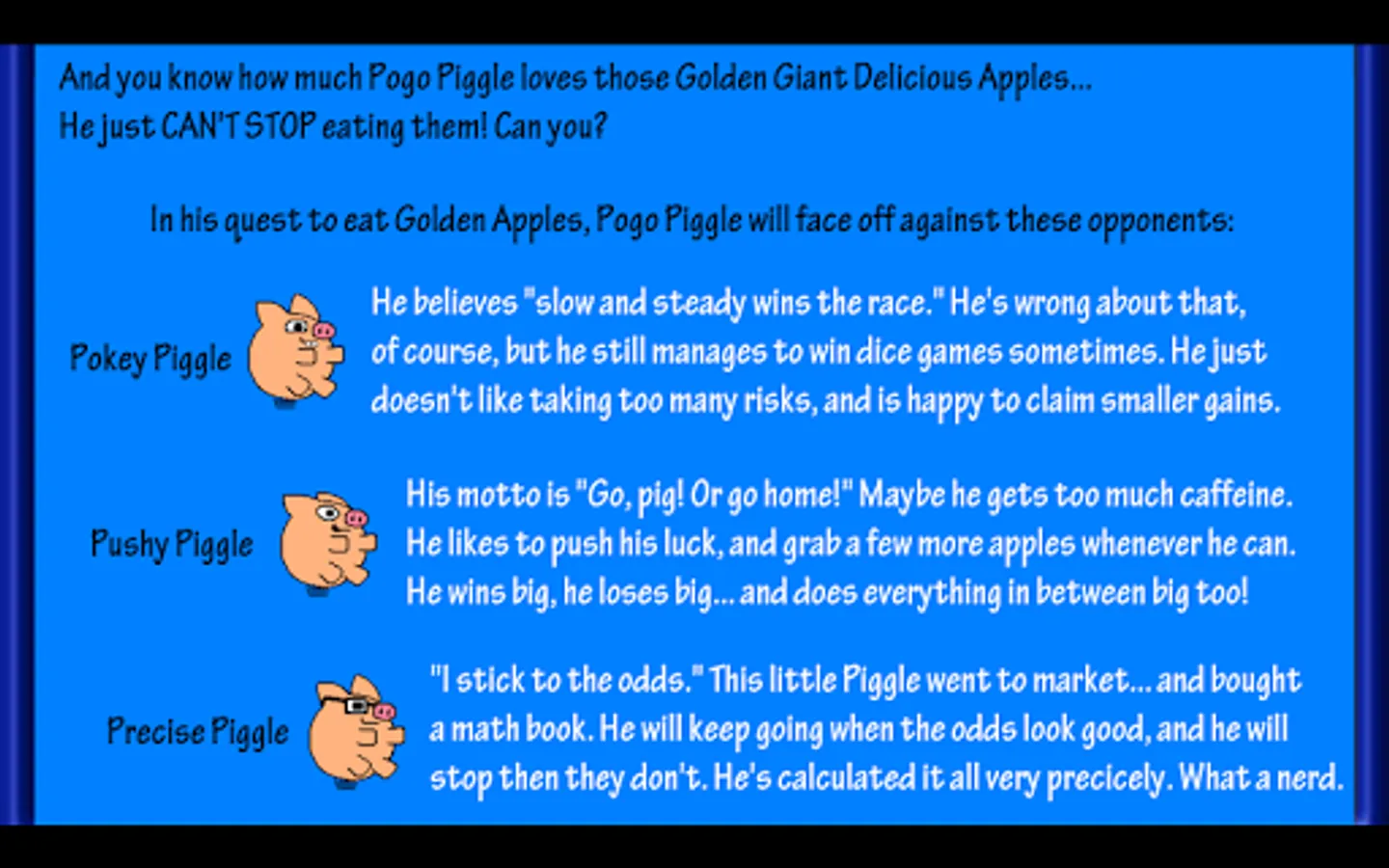 team of 3 Pogo Piggles all working together to eat as many apples as possible.