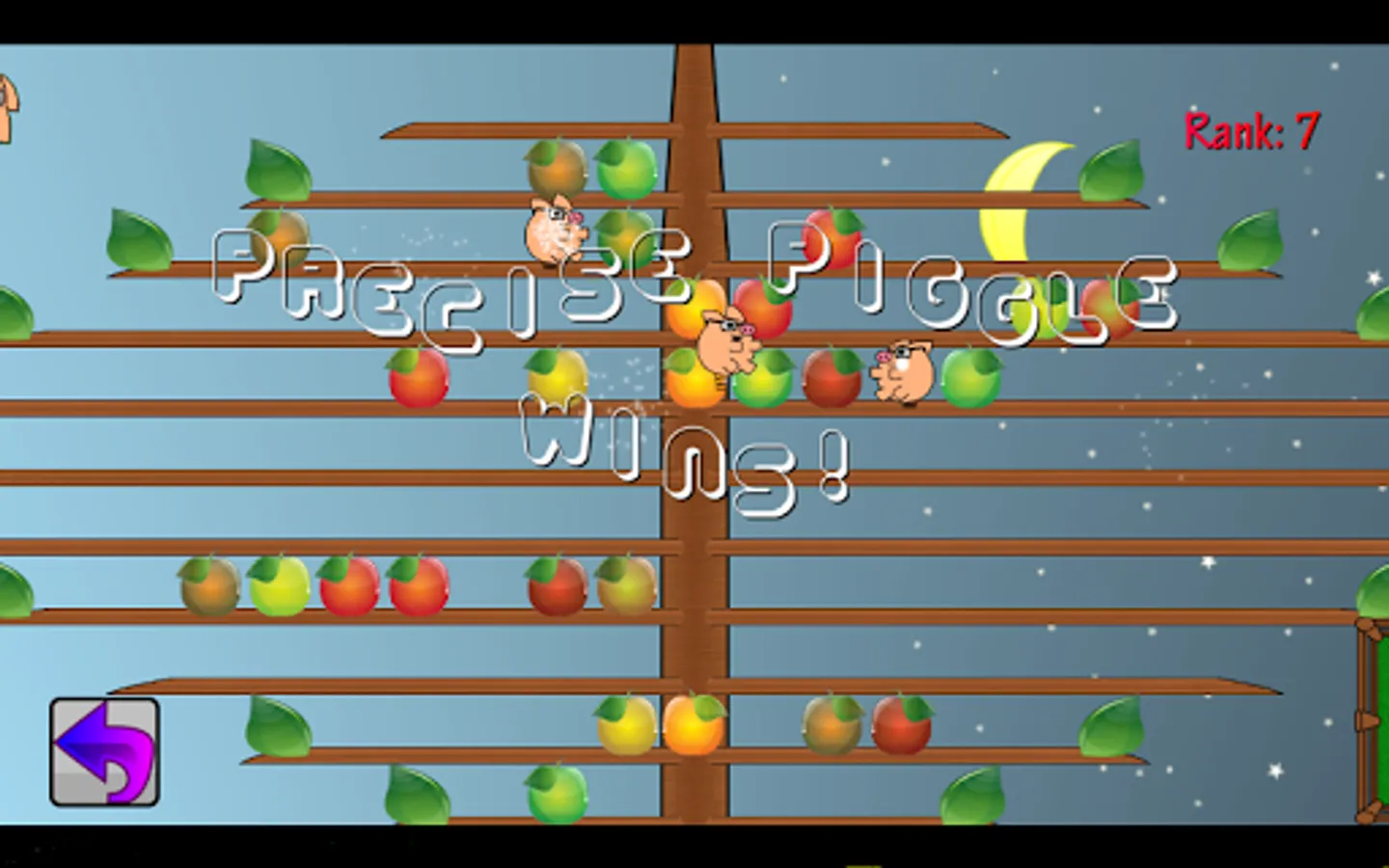 Compete against a friend (on the same device) or against a selection of AI Piggles to see who can eat the most apples. Gain more ranks to play games with higher goals.
