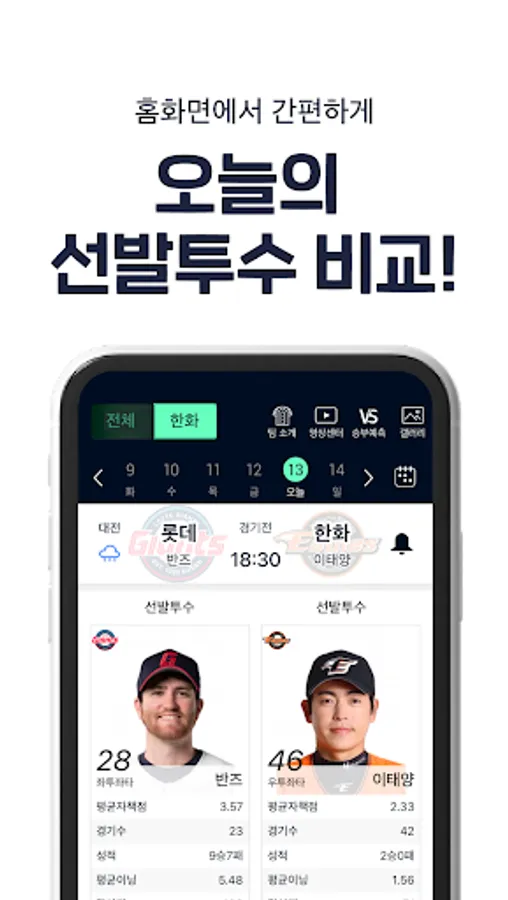 You can check the starting pitcher announcement of the game you want and the start/end information of the game through the push notification function.