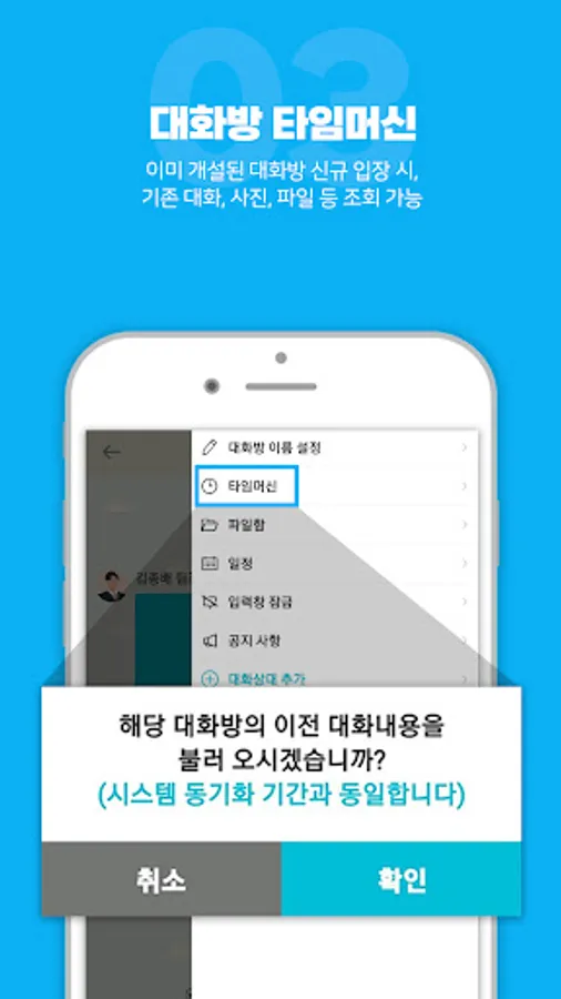 • View conversations and photos exchanged by existing participants even in newly invited chat rooms through the time machine function.