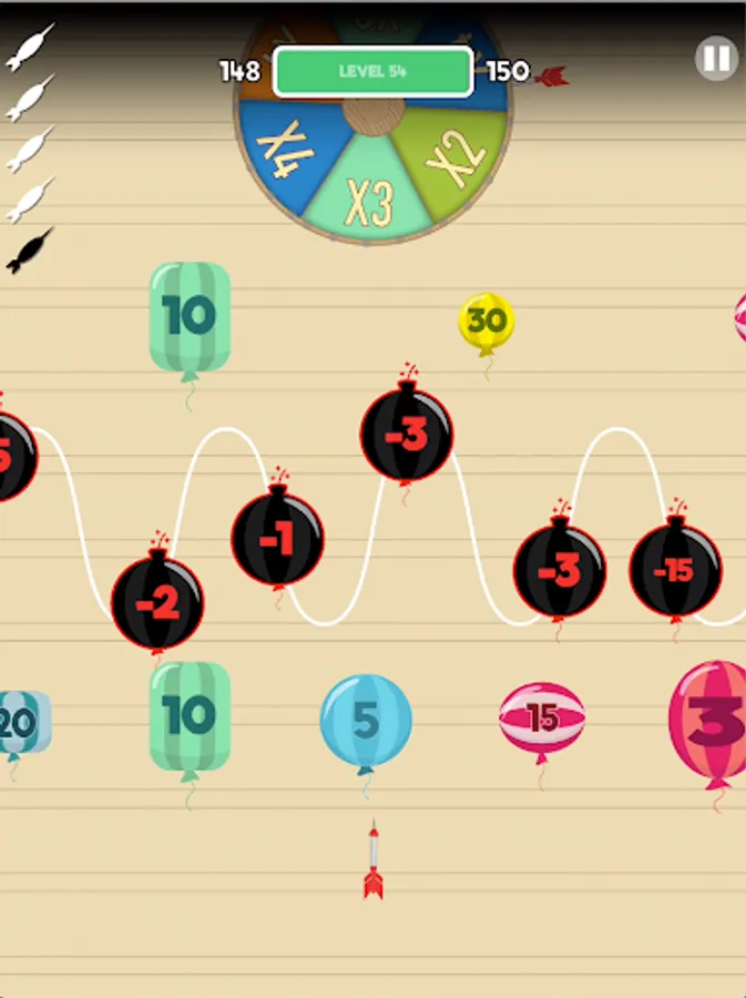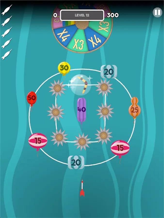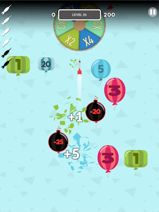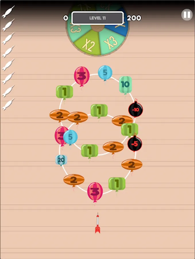 Tap to shoot at the right time and hit as many balloons as possible by hitting the multiplier on the wheel!