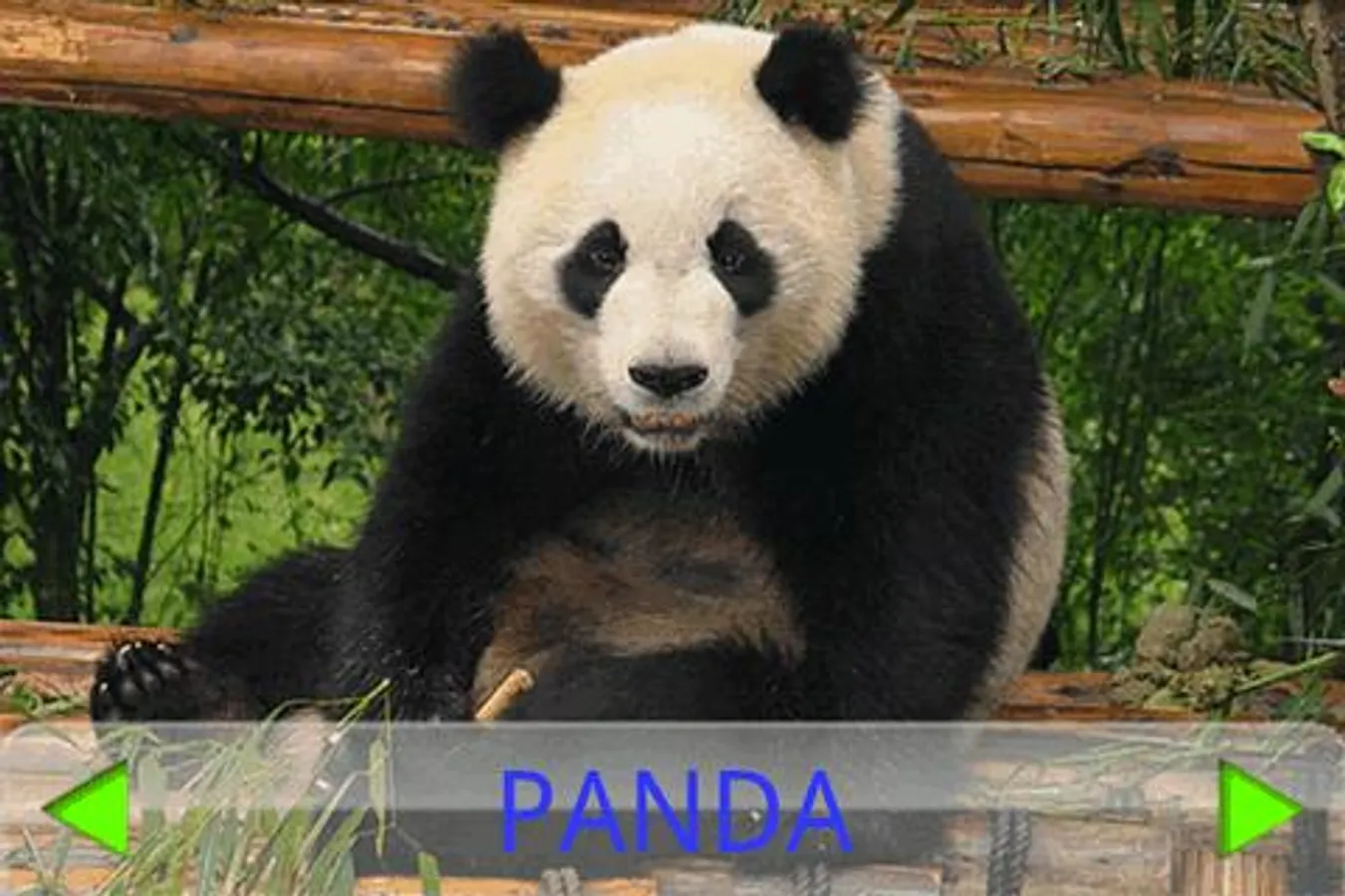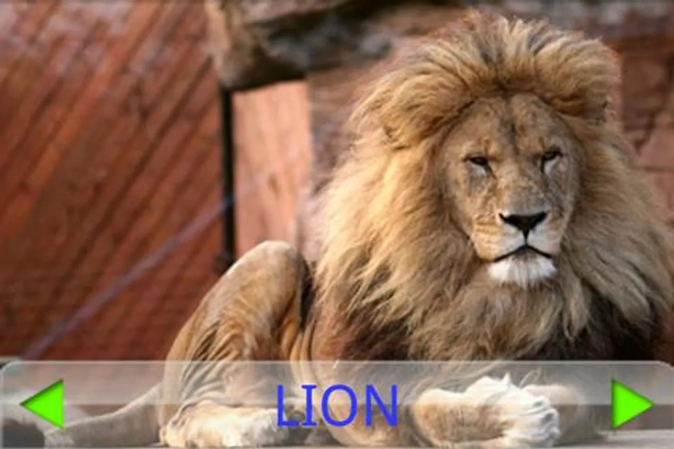 Tap on an image and you get the sound of the animal. Tap on the text of the label and you get a professionally recorded voiceover in ENGLISH of the name of the animal.