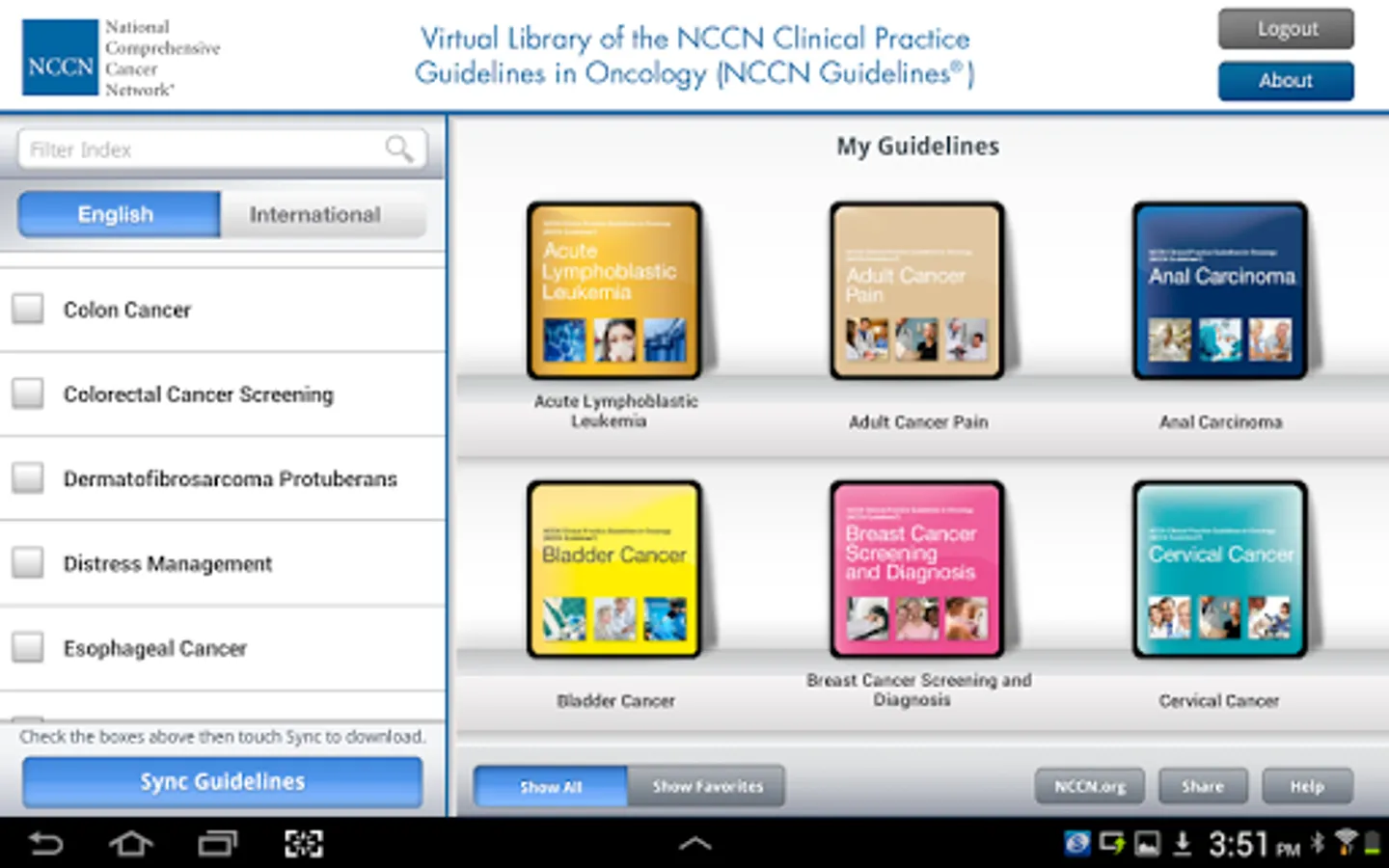 NCCN is pleased to present the updated Virtual Library of NCCN Guidelines® for both Smart Phones & Tablets.