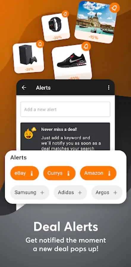 * Our Keyword Alerts ensure you never miss a deal on items you're interested in whether it's “Playstation", “TV”, “Laptop” or "Lego". Stay in the know and in control with timely updates.
