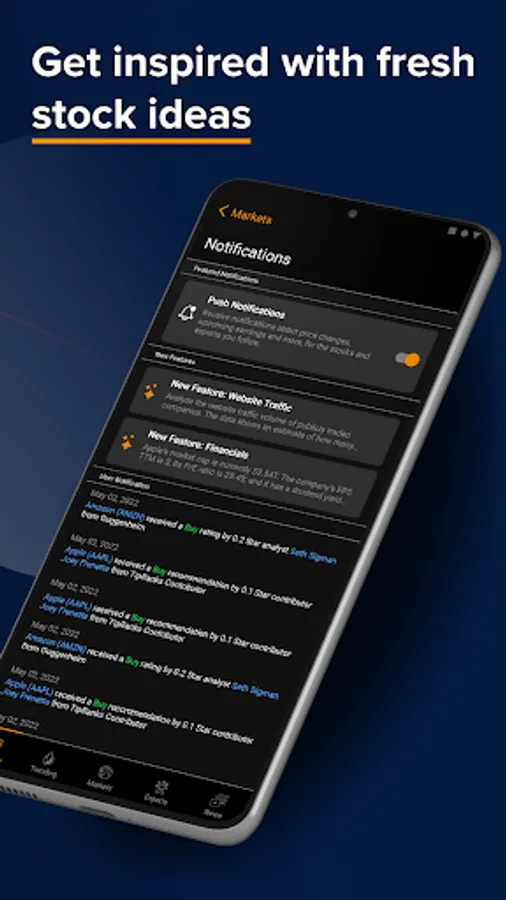 - Receive push notifications or email alerts about your favorite stocks and experts