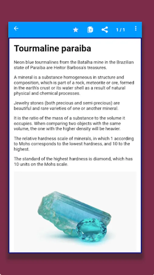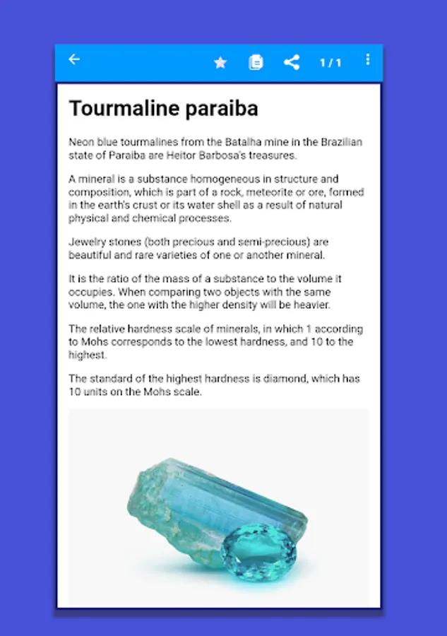 Our application will help you understand geology and rocks, find interesting pebbles without the Internet. You can see photos and information about minerals and gems and find them by photo. Here you can also search for gems and diamonds, as well as view detailed information about precious stones or crystals. The Minerals & Stones app is the perfect finder for lovers of minerals and gems. With our application you can enjoy the process of finding minerals and gems. You can find the information you need and enjoy the beauty of minerals and gems without an internet connection. The Minerals and Stones app will be your best assistant in finding minerals and gems. With our application you can get acquainted with minerals and precious stones, explore geology and rocks, and explore the magic of crystals. The Minerals & Stones app is the perfect tool for lovers of minerals and gems.