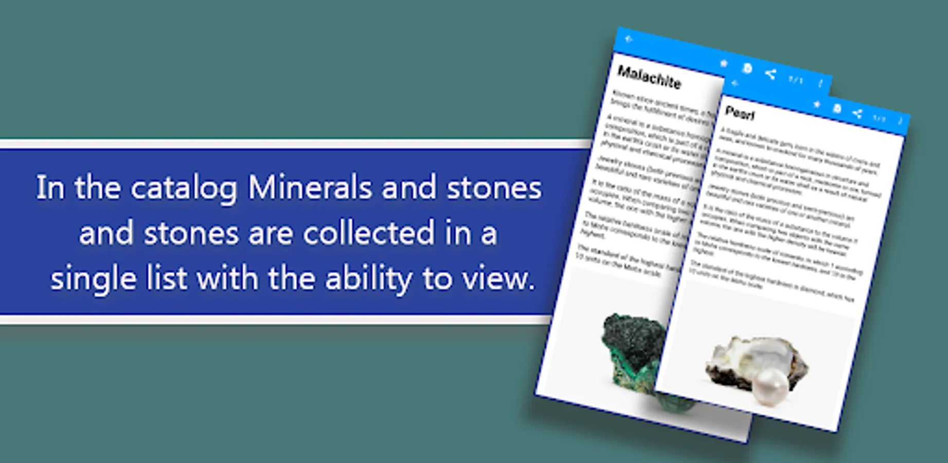 The application allows users to study stones and crystals without internet and get the latest news and updates.
