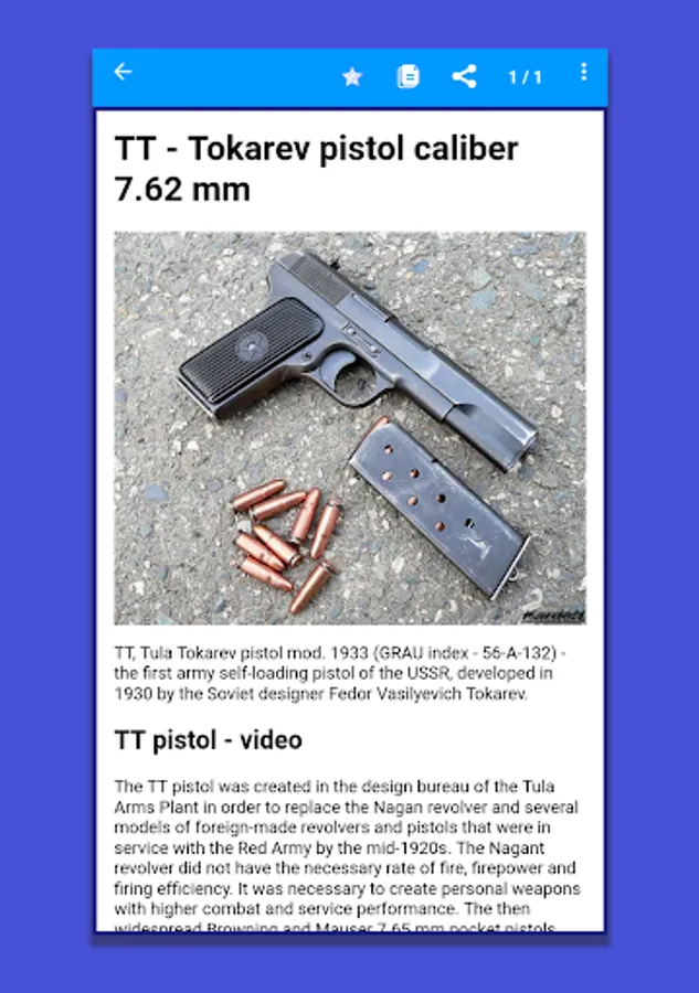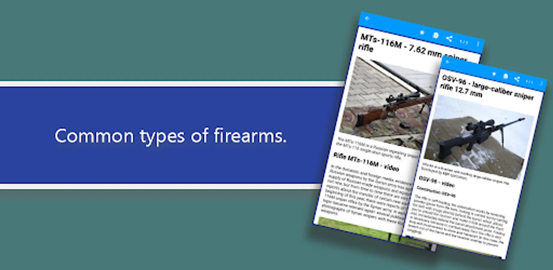 Small arms is an Android application that allows users to study and explore weapons in real life. The application presents machine guns, pistols, rifles and other types of weapons. You will be able to explore the history and various aspects of weapons including Kalashnikovs, AK-47s, UZIs, sniper rifles, assault rifles and TT pistols. You will also be able to learn the basics of weapons offline, as well as access a detailed encyclopedia of weapons. You will be able to study the history and various aspects of weapons, including the history of the development and use of weapons in various military conflicts. You will also be able to learn different types of weapons, including melee weapons, firearms, and small arms. You will be able to study the history of the world's small arms, as well as access detailed information about various types of weapons. You will also be able to learn the basics of using weapons, as well as access detailed information about what a rifle, submachine gun and pistol are. This application will allow you to get a complete understanding of the different types of weapons and their history. Small Arms is the perfect app for gun lovers who want a complete understanding of the world of guns.