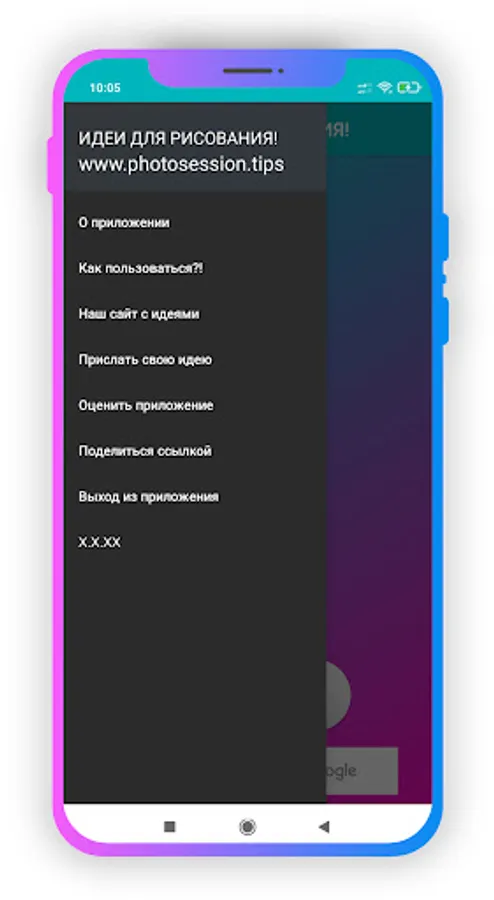 This app is designed to be a repository for a variety of drawing ideas. Each time you press the button, one idea is randomly selected from the general list, which you can use for inspiration or in order to overcome a creative crisis, or simply unwind from routine. You can challenge yourself by doing a random activity every day. The list of ideas is regularly updated. Everything is very primitive and simple, but with all this it is very useful, especially if you need regular practice in drawing. You can always send us your idea.