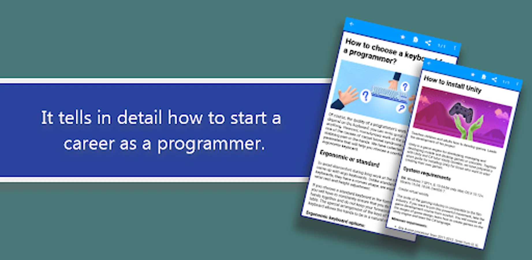 Our application "How to become a programmer" provides users with the opportunity to get information about programming from scratch. This is the perfect solution for people who want to become professional programmers or just start learning how to program. Our application will help you not only master the theory, but also start the practice of programming from scratch.