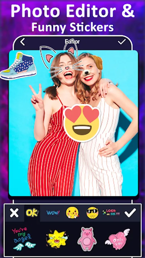 Photo editor & music video maker is a powerful photo editor with lots of great effects and filters. This application photo video maker with music contains the most common used image processing functions: Effects, filters, frames, adjustments, brightness, crop, rotate, add text, cool Stickers ... With friendly interface helps you create the best photos