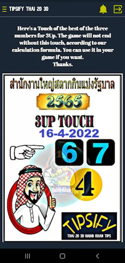Thai 2D/3D Tipsify Give you Habib Khan's advice on Thailand's 3Up and 2Down games. Mostly about best touch, best total, best single digit tips, best cut tips, and magazine paper.