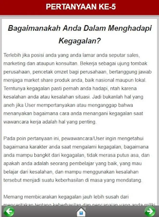 In the application is quite complete because it provided a variety of the usual question is given by the applicants and answer so that you can practice and practice for dealing Interview Job Interview.