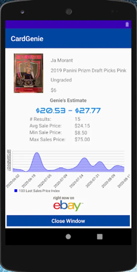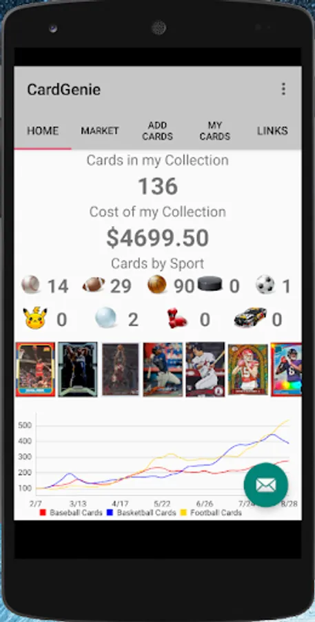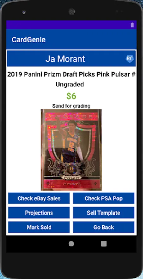 Manage your entire card collection right from your phone! Check past sales on eBay, PSA pop reports, player stats, use sell templates and so much more!!! Also includes market indexes for Basketball, Baseball, and Football that are updated weekly. See who is hot and get a handle on what your cards are worth! A profit tracker will be incorporated very soon!