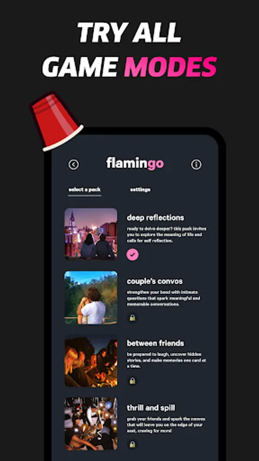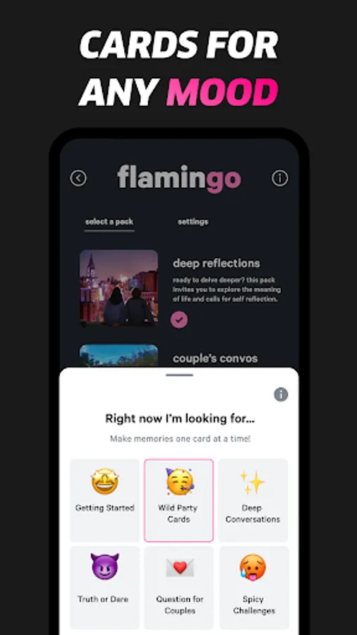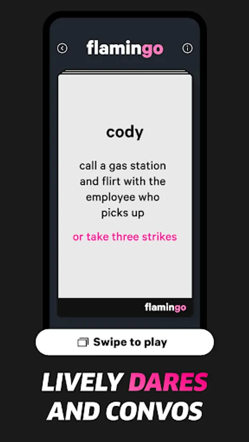 All you have to do is add your friends and let flamingo cards excite your night. This game is designed to spark convos that will leave you on the edge of your seat, craving for more! Forget the boring, bland, and weird party games, and introduce flamingo cards to your daily life. Filled with cards that will create long-life memories for you and your friends. We created this game because no other game is as interesting and speaks for the modern conversational experience, like flamingo cards does.