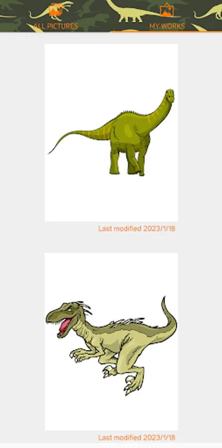 The coloring game Dinosaurs Coloring Book Dino contains different categories of dinosaur painting: