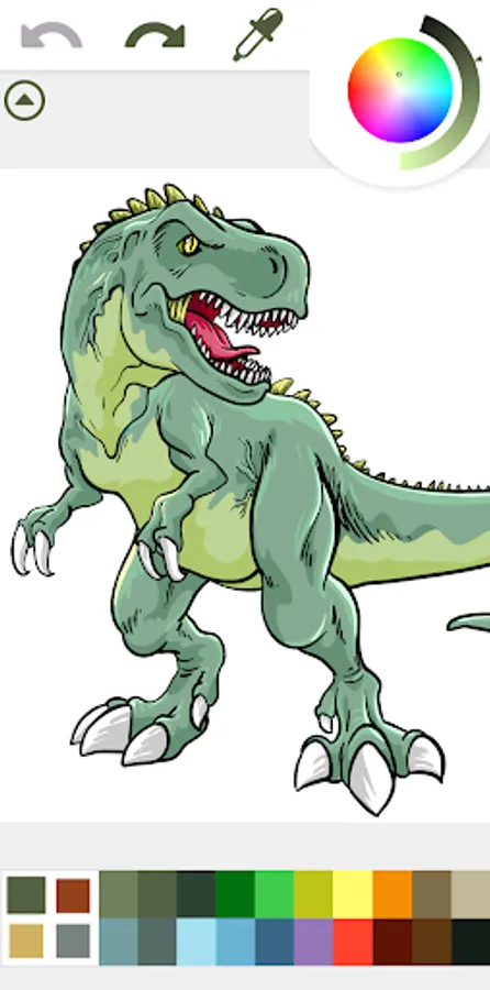 ✔ Select a color in the palette and click on the area of the dinos picture you want to paint over. Then select the next color in the palette and continue coloring dinosaur;
