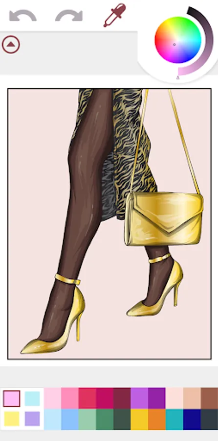 ✔ Select a color in the palette and click on the area of the fashion drawing you want to paint over. Then select the next color in the palette and continue coloring fashion sketch;