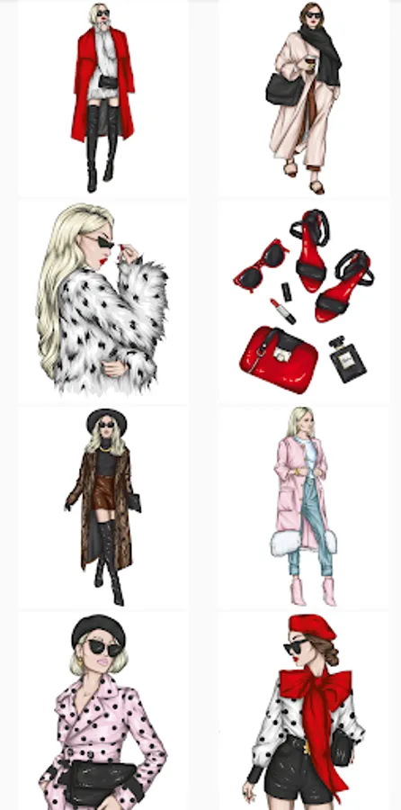 The coloring app Fashion Color Book Style Games contains different categories of fashion drawing: