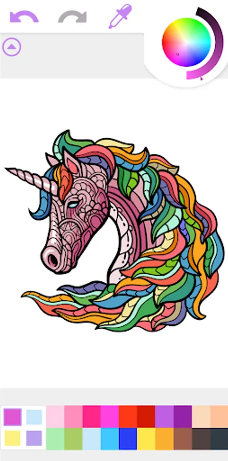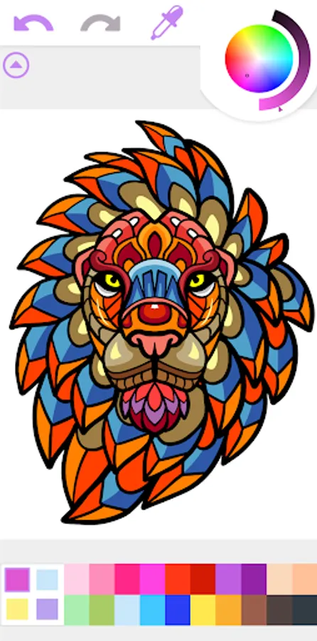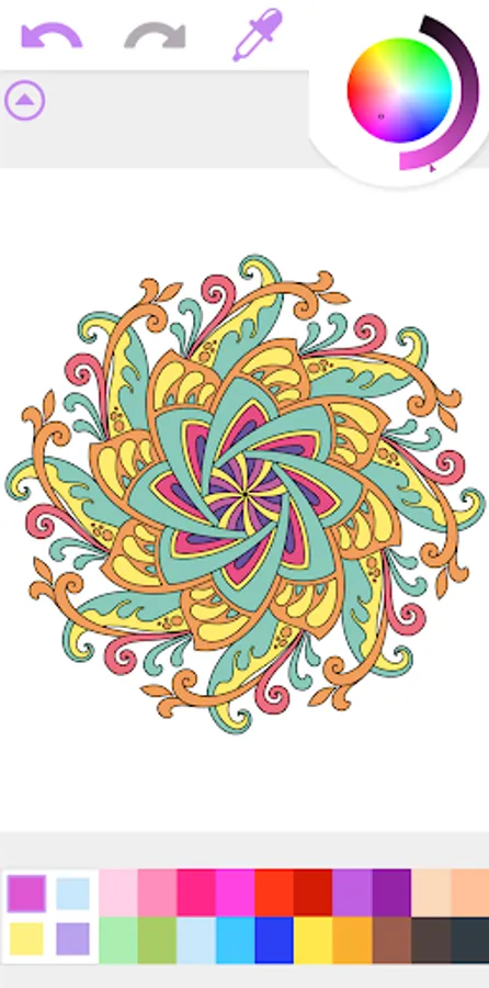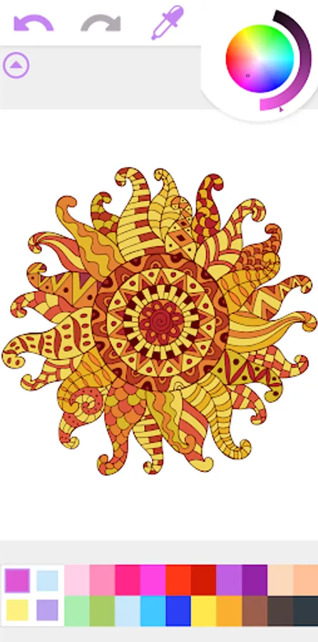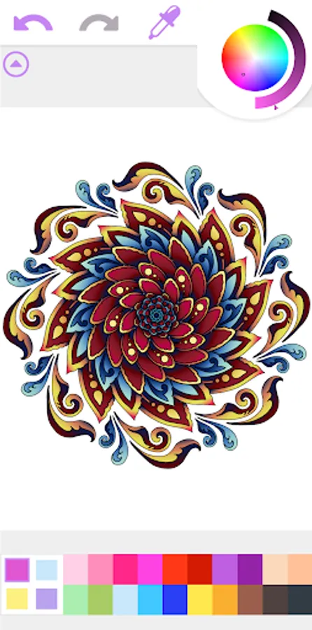 ✔ Select a color in the palette and click on the area of the mandala picture you want to paint over. Then select the next color in the palette and continue coloring;