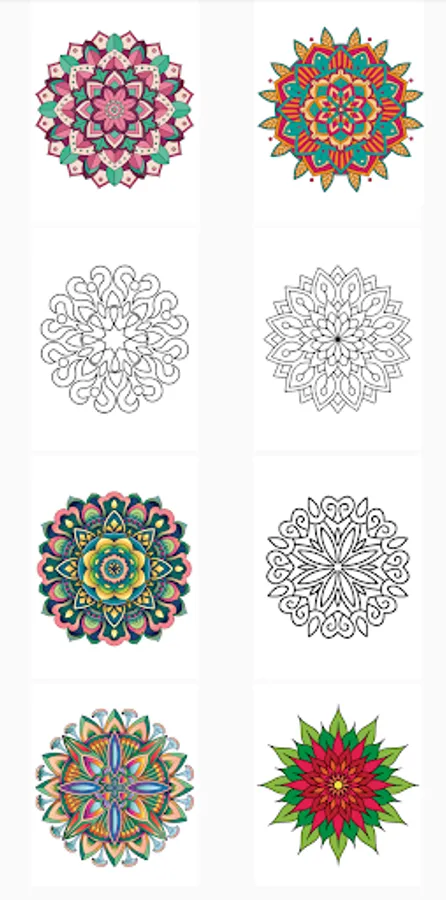 ✔ Open our antistress mandala coloring game, select the category of mandala color pages and mandala picture you want to color;