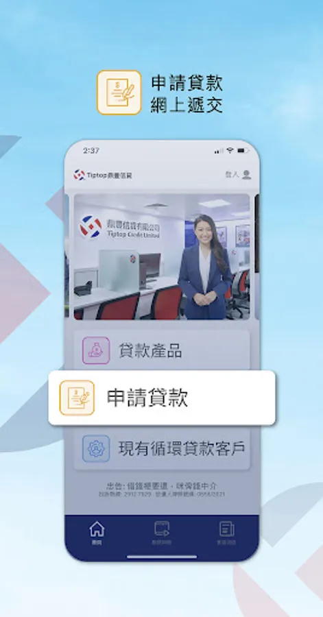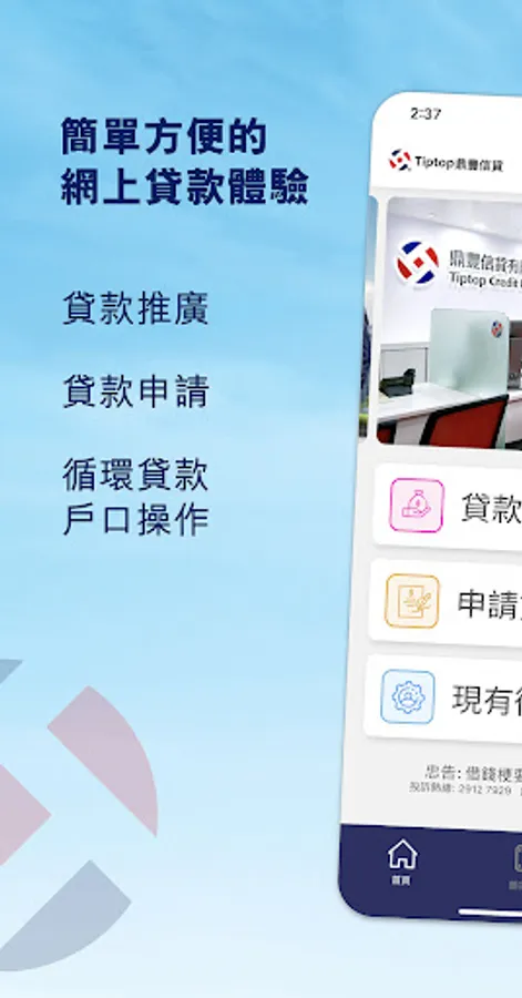 Tiptop Dingfeng credit products include personal loans, loan transfers, personal revolving loans, mortgages and personal loans for homeowners. Tiptop Dingfeng Credit provides you with loan discounts, such as card clearance loans, large loans, low-interest loans, etc., tailored to your needs Create the loan that best suits your needs.