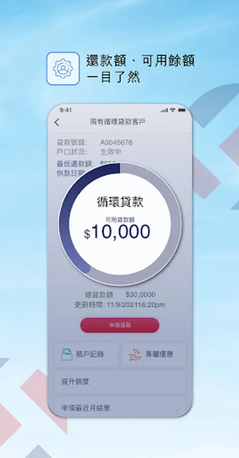 Existing customers can apply for self-service withdrawal and increase the reserve amount by using this Tiptop Credit APP, and get approved quickly. Repayments and available balances at a glance.
