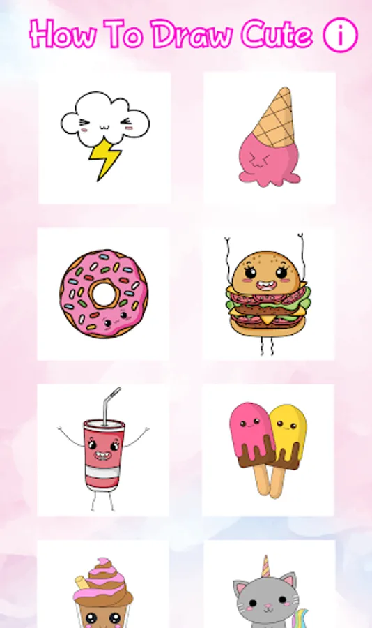 The best, easy and cute step by step drawing lessons in our cool app How to Draw Cute! Cute drawing tutorials how to draw animals, kawaii drawings and cute food are waiting for you!