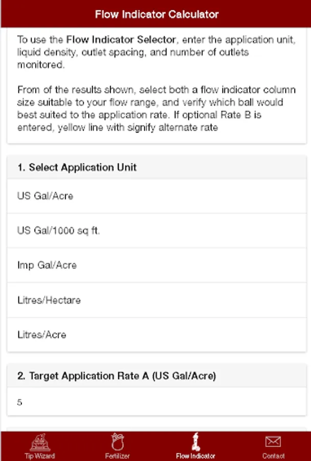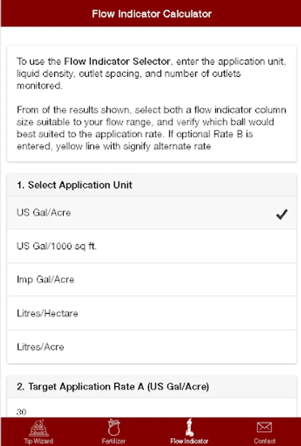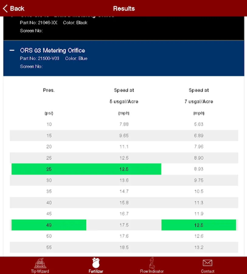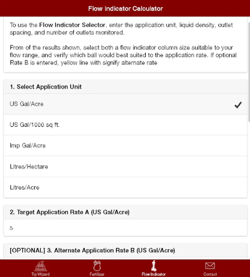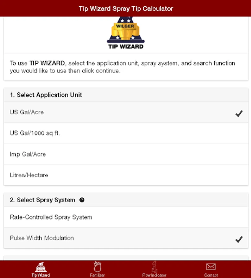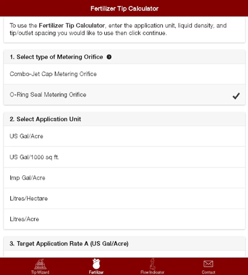 Some newer features to Tip Wizard are the ability to select fertilizer streamer nozzle and visual flow indicator metering orifices within the app itself.