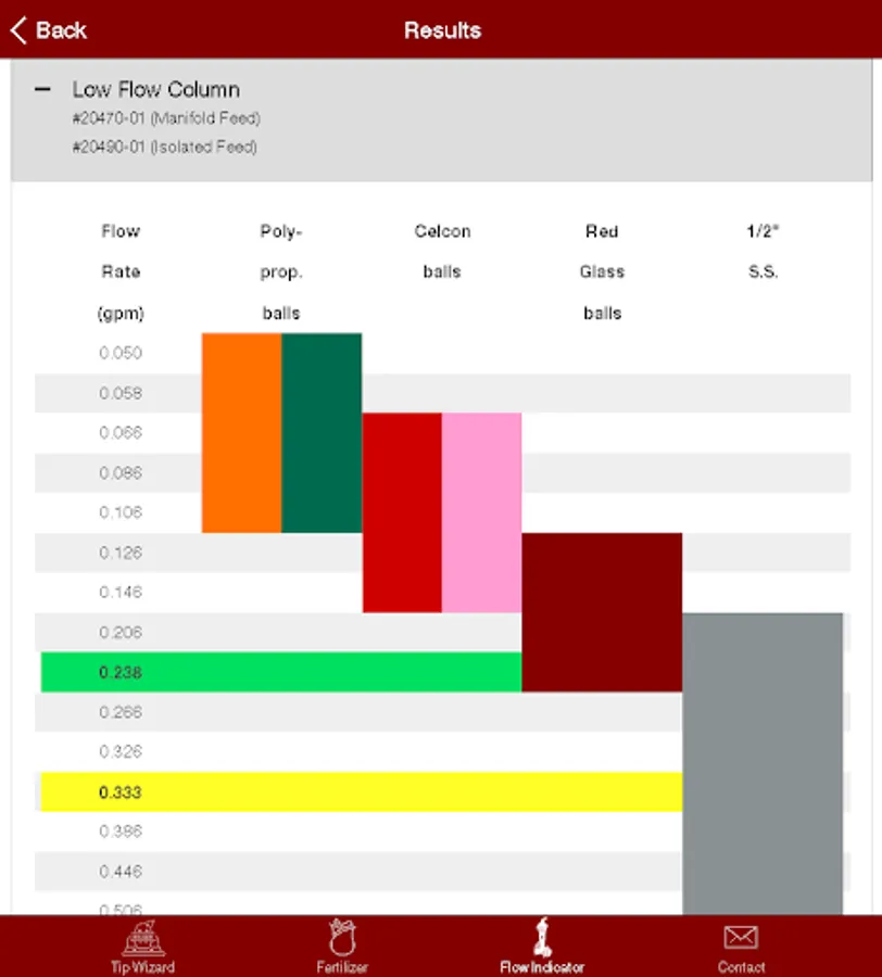 Another new function to Tip Wizard is being able to select which style/type/size and ball to use with Flow View Ball Flow Indicators. (Another agricultural liquid application: liquid fertilizer or chemicals applied in furrow with seed)