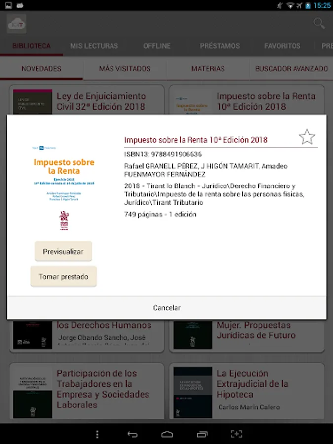 Service of the Virtual Library of the Il·lustre Col·legi d'Advocats of Tarragona, which allows the reading of books and magazines from home. This project makes it easier for collegiate and associate persons to consult the Library's digital fund from any place and at any time 365 days a year.