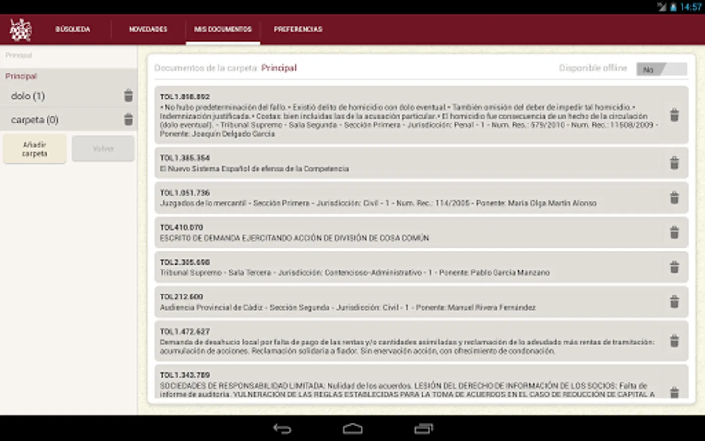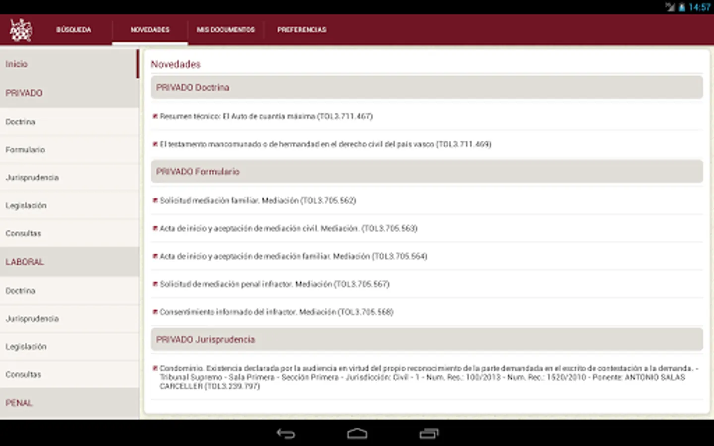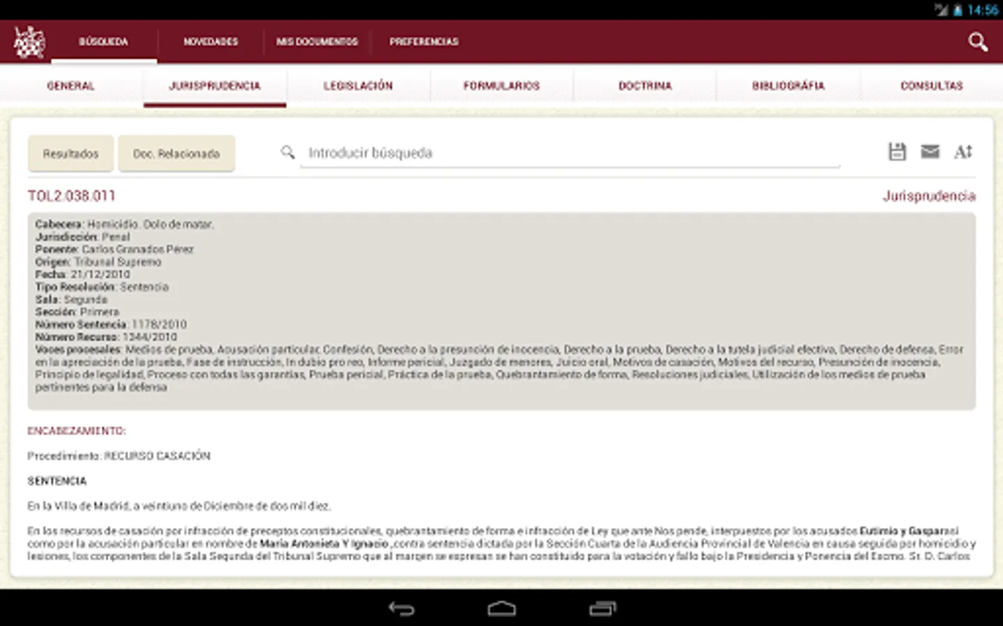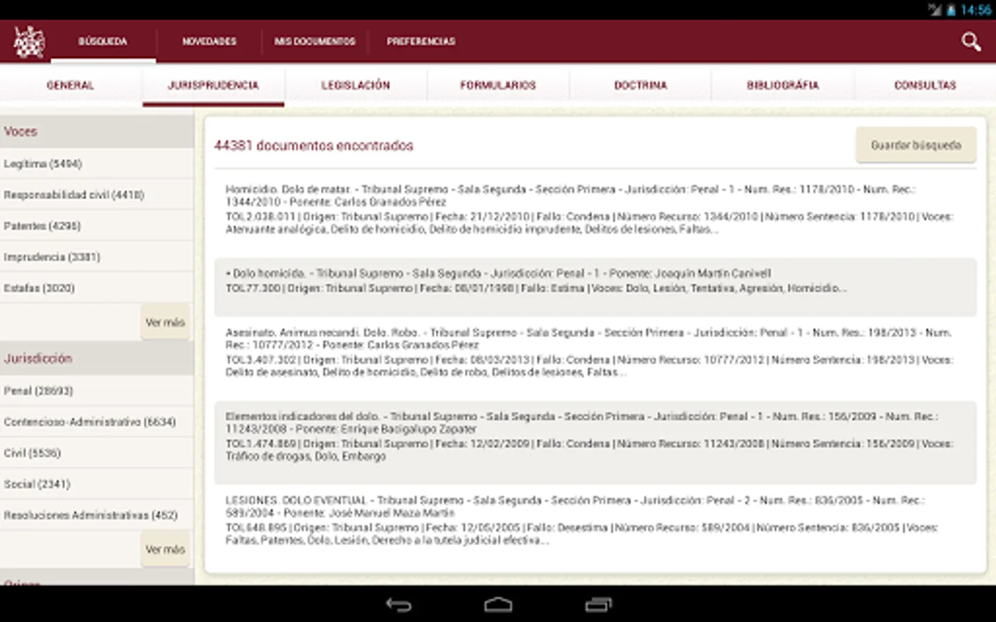 The app Tirant Online gives you access to General Search to obtain documentation across the database and its recommendations and advanced document type (jurisprudence, legislation, forms, doctrine and literature) with all existing filters Seekers in the web version.