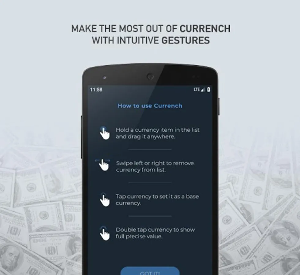 Currench is one of the most intuitive currency exchange app out there, with accurate results and easy to use gestures.