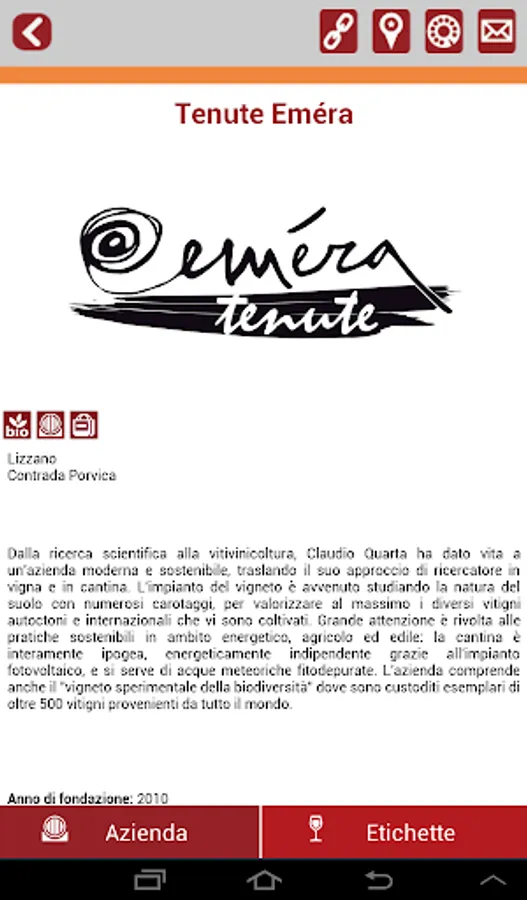 The app allows users to contact the company via e-mail or phone, knowing the geographic location using the geolocation and visit each company's website. It is not essential internet connection for consultation (with the exception of the geolocation feature that requires internet connection).