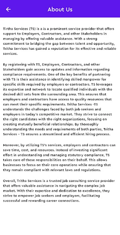 Tirtha Services (TS) is a is a prominent service provider that offers support to Employers, Contractors, and other Stakeholders in managing by offering valuable assistance. With a strong commitment to bridging the gap between talent and opportunity, Tritha Services has gained a reputation for its effective and reliable services.
