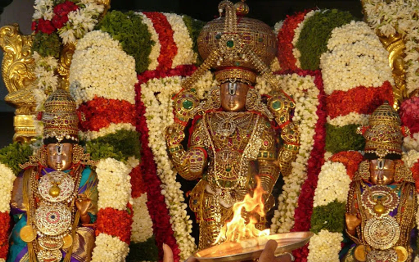 Lord Venkateswara is the main diety, which is one form of Hindu God Vishnu. The lord is also known by other names such as Govinda, Srinivasa or Balaji.