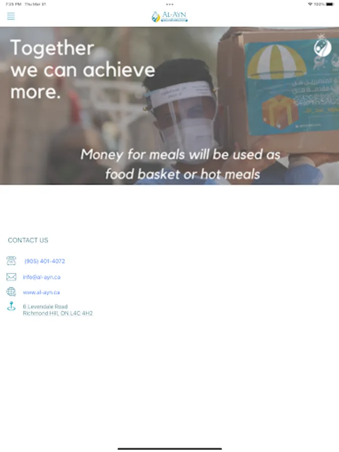 Al-Ayn Social Care foundation is registered as a Non Profit Organization in Canada. Please visit our website www.al-ayn.ca for our terms and conditions.