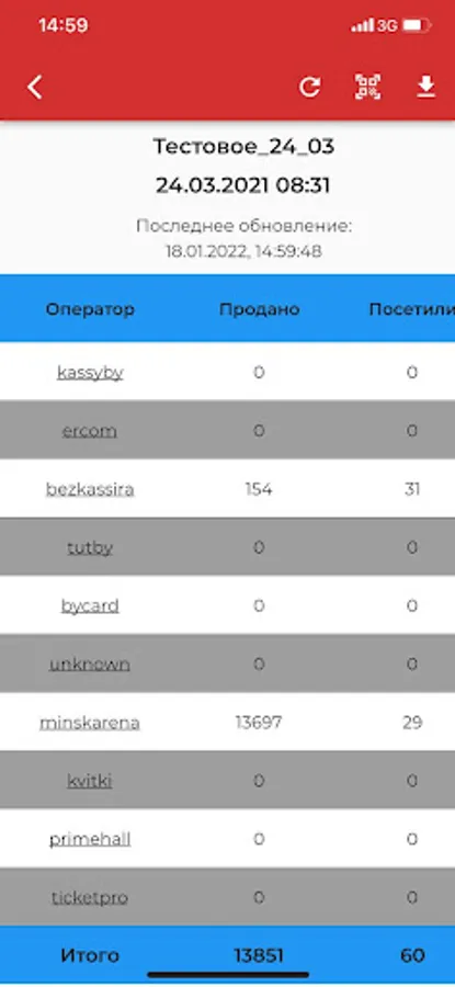 The application allows you to get information about concerts and sport events, including detailed information about the tickets sold by each ticket operator, as well as get information on a specific ticket