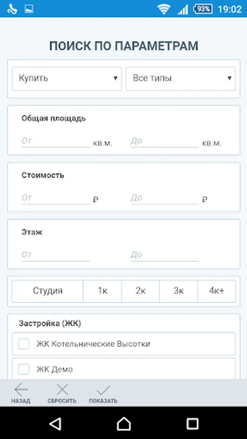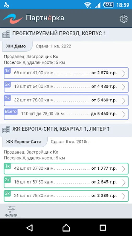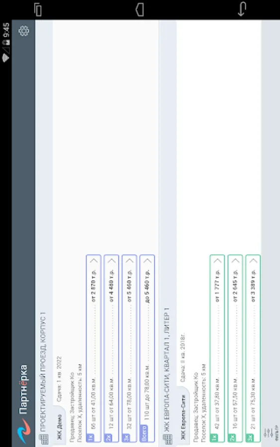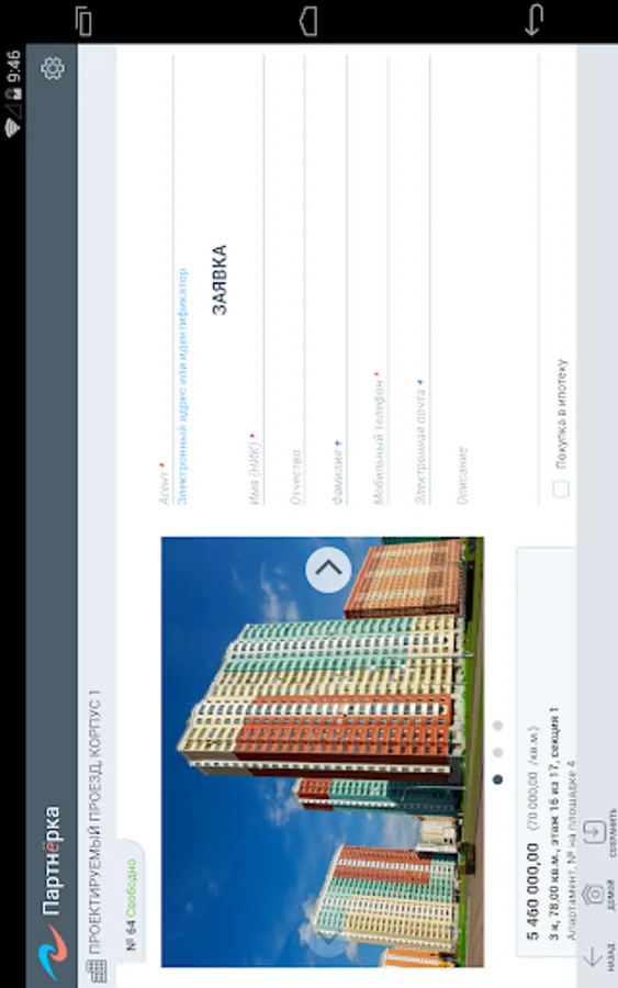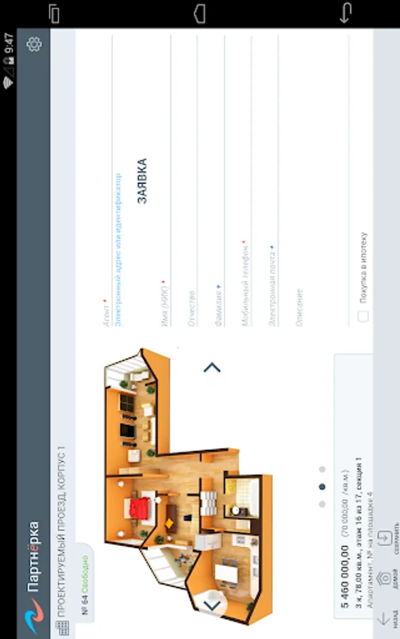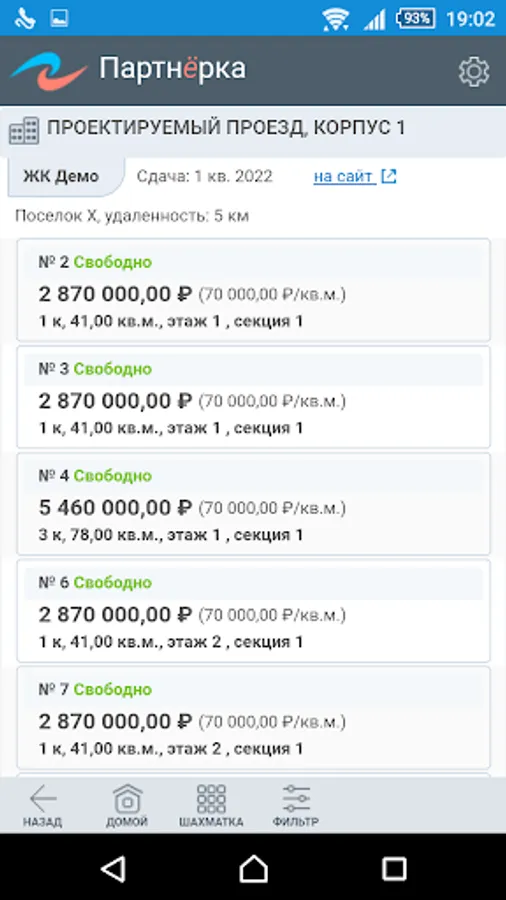 Affiliate Mobile application gives you the opportunity to continue to work on the move easily and quickly get access to the actual real estate on their own objects price list and / or data from your partners in a "Checkerboard" or "List".
