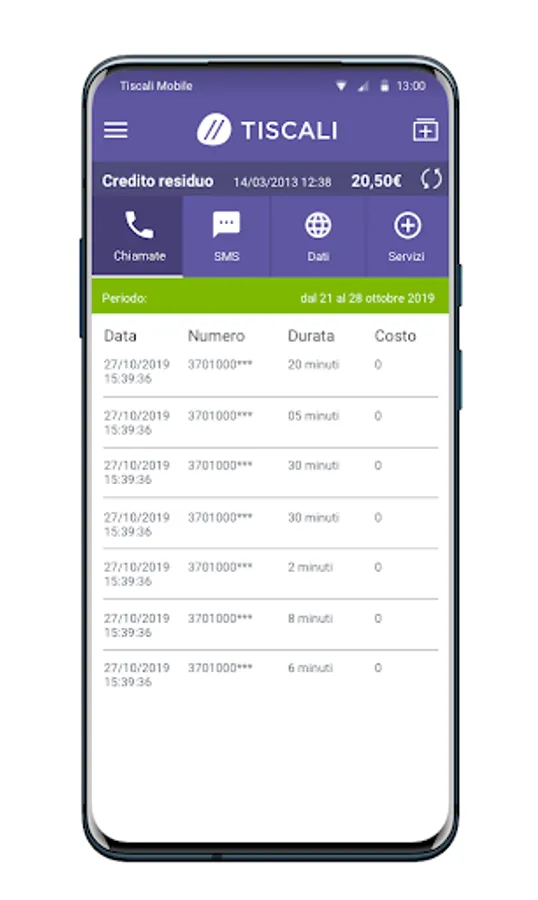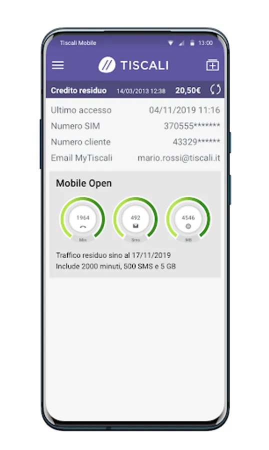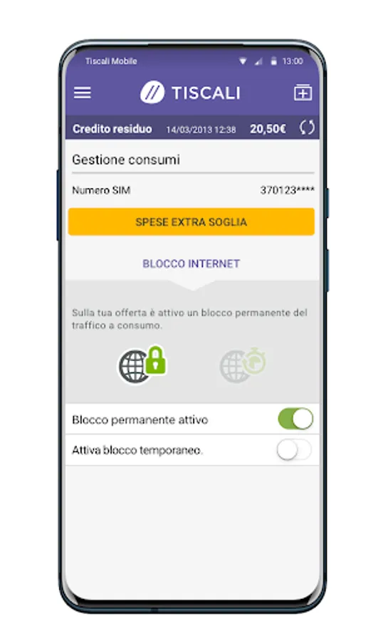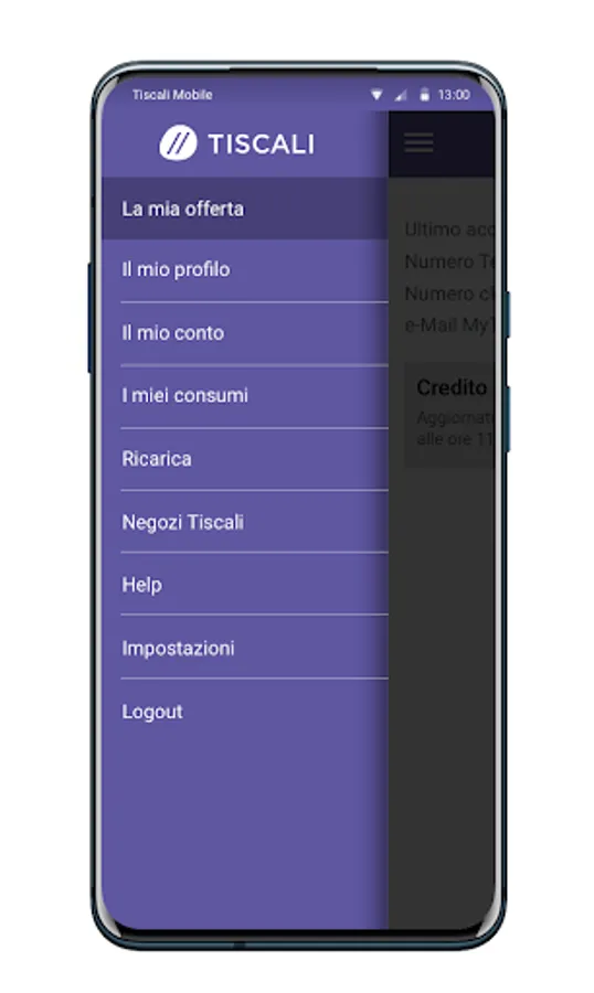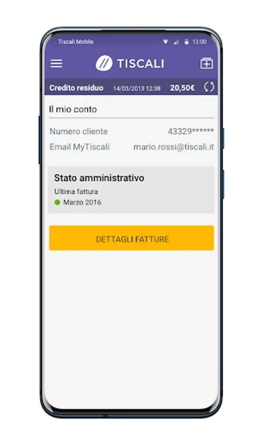 The App MyTiscali works in 3G / LTE mode and Wi-Fi