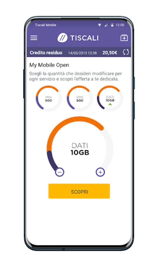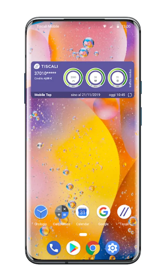Activating the MyTiscali widget, you'll have the ability to view directly on the home screen of your smartphone, minutes, SMS and consumption DATA included in your offer Mobile.