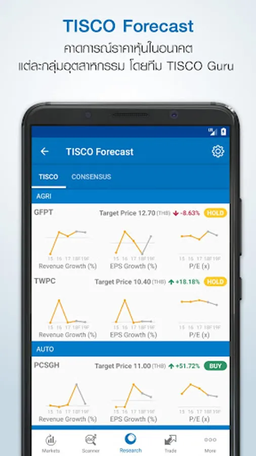 3. Scanner : กลยุทธ์แบบสำเร็จรูปที่เหล่ากูรูของทิสโก้เป็นคนช่วยกันสร้าง และ กลยุทธ์แบบ DIY (Do it yourself) ที่ทำให้นักลงทุนสามารถค้นหาหุ้นด้วยตัวเองและบันทึกเก็บไว้เพื่อใช้หาในครั้งต่อไปได้ Stock Scan Plus
