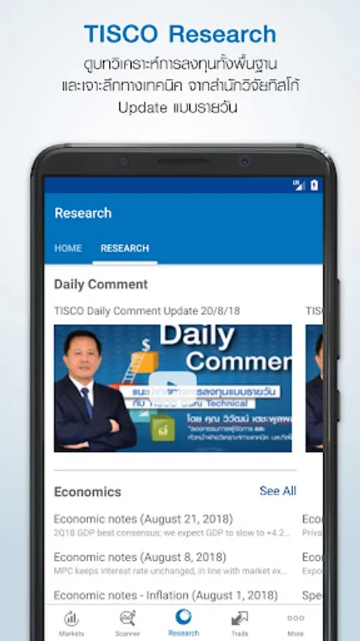 2. Research : บทวิเคราะห์หลักทรัพย์กลยุทธ์ทั้งหุ้นและอนุพันธ์ และบทวิเคราะห์หุ้นรายตัวแบบเจาะลึก โดยตรงจากฝ่ายวิเคราะห์หลักทรัพย์ โดยสามารถดูได้ทั้ง VDO Daily Comment , Monthly Comment และ PDF