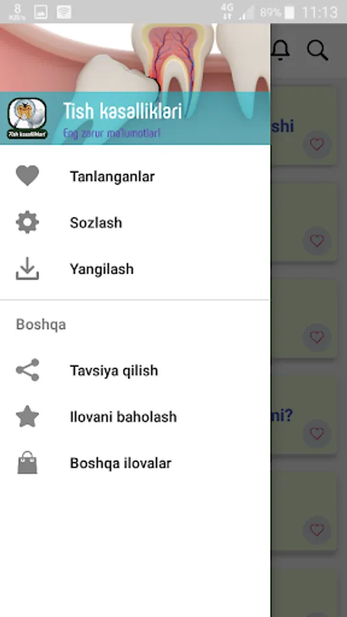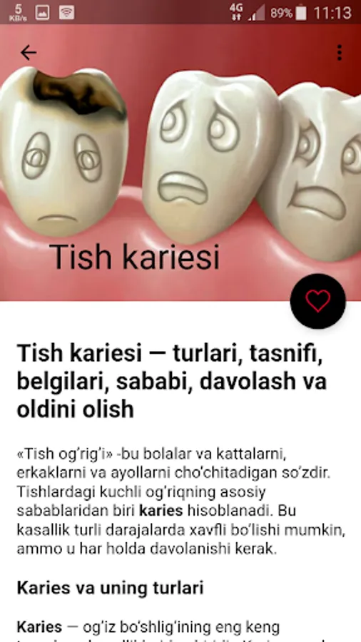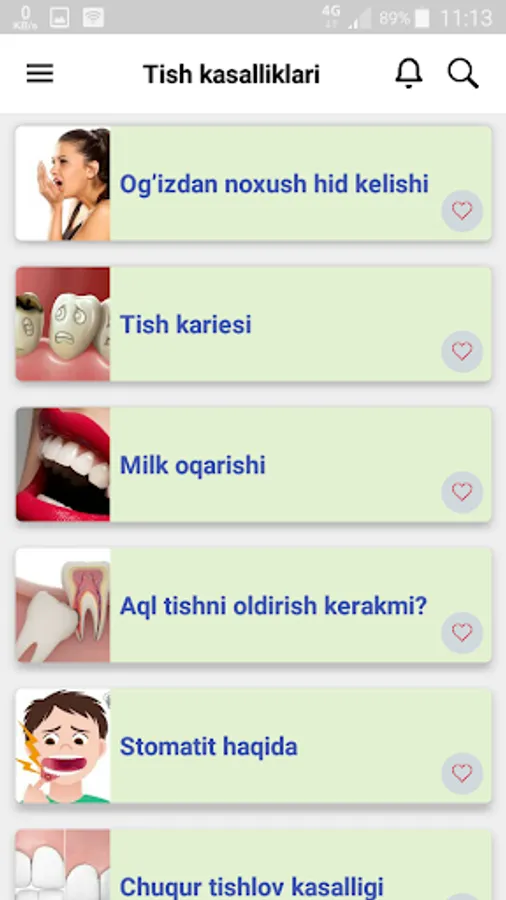 Tishlar og’rishiga turli tish kasalliklari sabab bo’lishi mumkin. Rivojlanmagan tishlar – bu tishlar inson tug’ilishidan yaxshi rivojlanmaydi. Tishlar orasida toshlar paydo bo’lishi, tishlarning rangi o’zgarib uqalanib ketishi (karies), tishlarning ildizi va milklarning shamollab og’rishi va xar hil qo’lansa hidlar kelishi tish kasalliklariga kiradi.