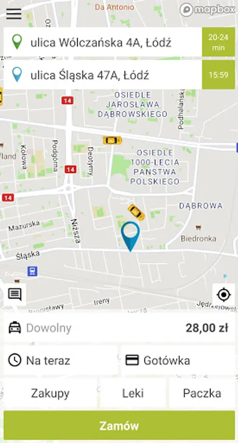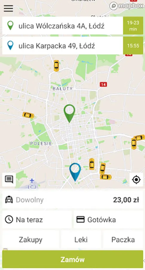 Application for ordering taxis in the Green Cab Taxi corporation.
