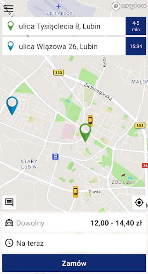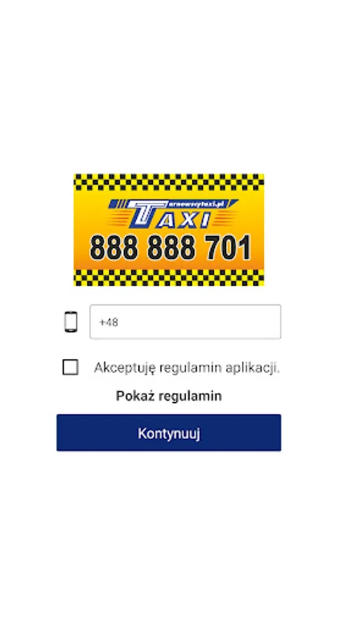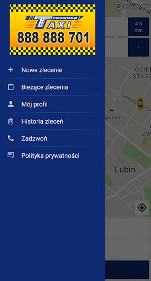 Application for ordering the taxi company Taxi Tarnowski in Lubin.