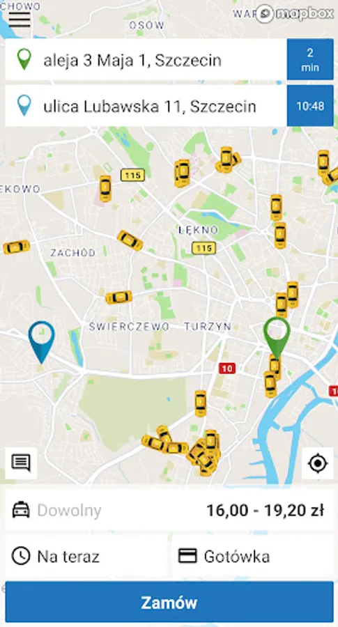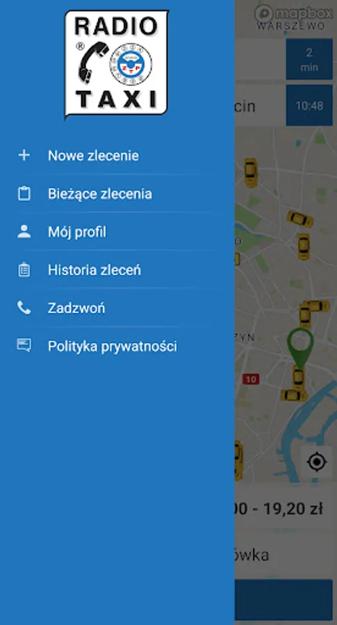 The application for ordering taxis in the company ZTP Radio Taxi in Szczecin.